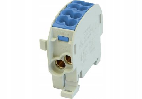 Blok rozdzielczy 1-potencjałowy, łączony, 100A, wejście 2x25mm², wyjście 2x16mm2 Niebieski