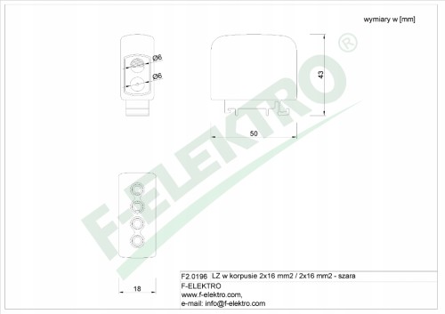 F2.0196 LZ w korpusie 2x16/2x16 mm2 szara