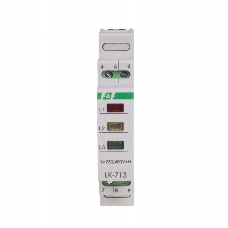 Lampka sygnalizacyjna LK-713 służy do optycznej sygnalizacji obecności napięcia w poszczególnych fazach sieci 3fazowej.