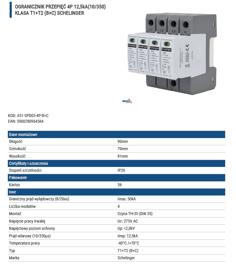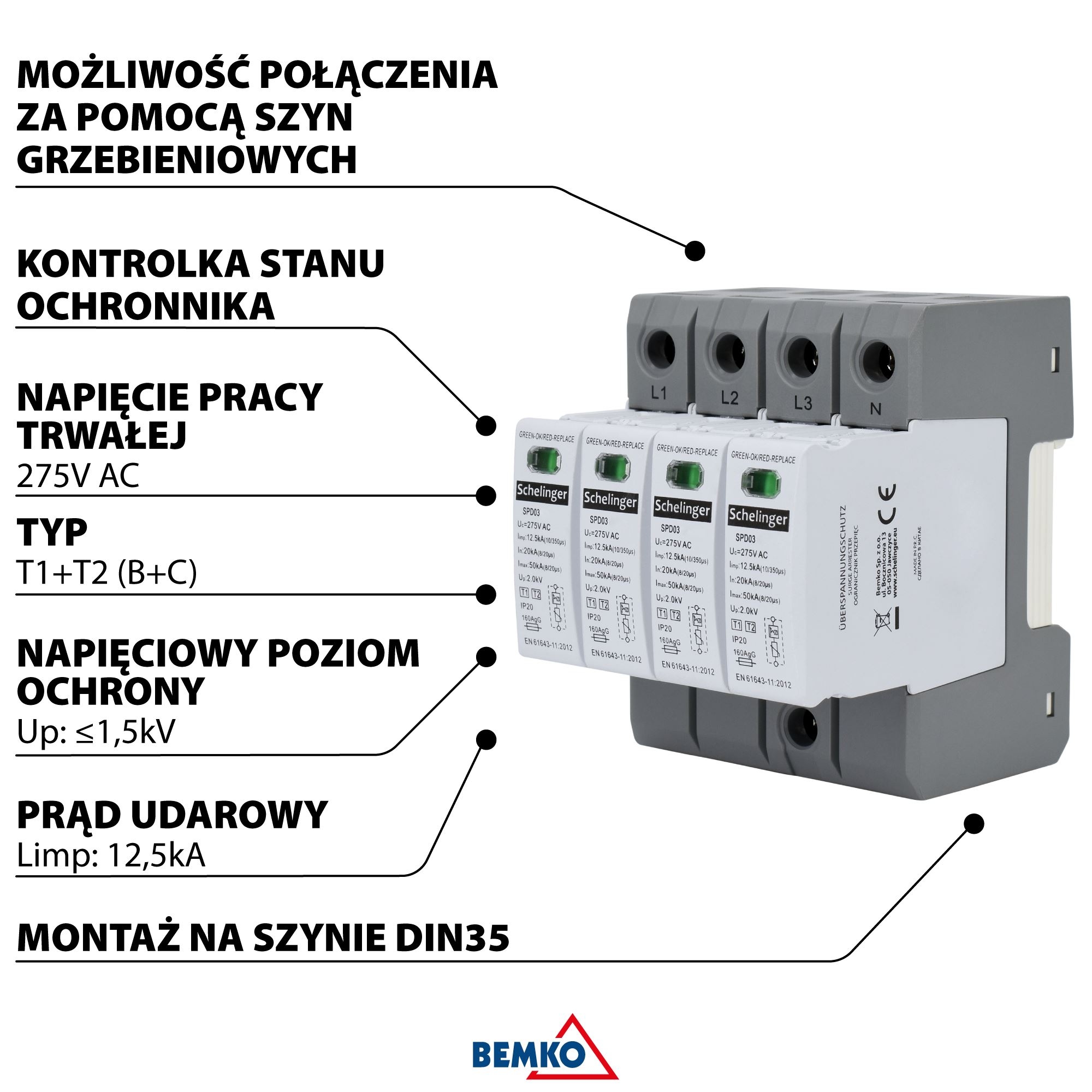 Ogranicznik przepięć B+C (T1+T2) 4P 12,5kA AC SCHELINGER