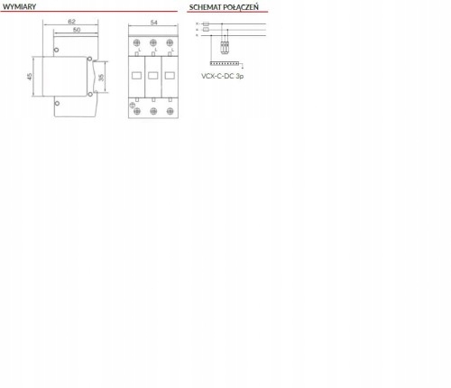 VCX-40PV-C 1000V klasy T2 – to ochronnik który jest zbudowany z wykorzystaniem specjalnego warystora (MOV) o dużym przepływie oraz iskiernika gazowego (GDT). Dlatego, użycie jednego lub dwóch warystorów może spełnić standardy, dla osiągnięcia wyników których których inni producenci potrzebują zastosować wiele warystorów. Użycie mniejszej ilości warystorów powoduje zmniejszenie wielkości ochronnika. Nasz ochronnik ma szerokość 18 mm/1 pole, a całkowita szerokość 3 biegunów wynosi tylko 54 mm.