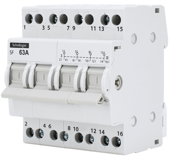 Przełącznik sieć-agregat 4P 63A SCHELINGER jest idealny do zastosowań w: