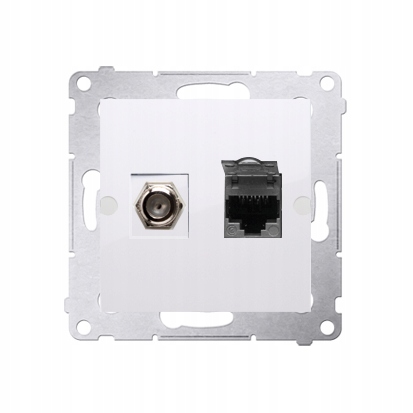 Simon 54 Gniazdo typu F + komp. RJ45 kat5e biały DASFRJ45.01/11