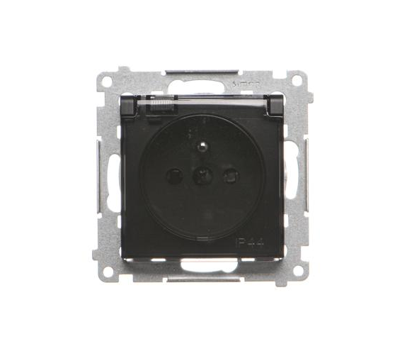 Simon 54 czarny mat Gniazdo z uziemieniem IP44 z klapką transparentną DGZ1BUZ.01/49A