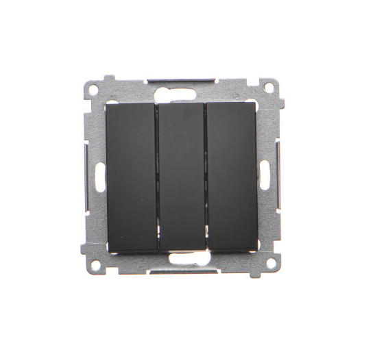 Łącznik potrójny z serii Simon 54 w kolorze czarny mat to funkcjonalne rozwiązanie umożliwiające sterowanie trzema niezależnymi obwodami oświetleniowymi z jednego miejsca. Produkt dedykowany do nowoczesnych instalacji domowych i komercyjnych, zapewnia wygodę oraz oszczędność miejsca w puszce podtynkowej.
