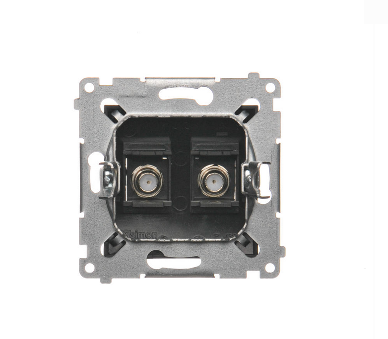 Moduł wyposażony jest w dwa niezależne wyjścia typu „F” – idealne do połączeń z dekoderami satelitarnymi lub innymi urządzeniami wykorzystującymi złącza koncentryczne. Gniazdo przeznaczone jest do montażu podtynkowego, z mocowaniem na pazurki lub wkręty, co zapewnia trwałą i pewną instalację.
