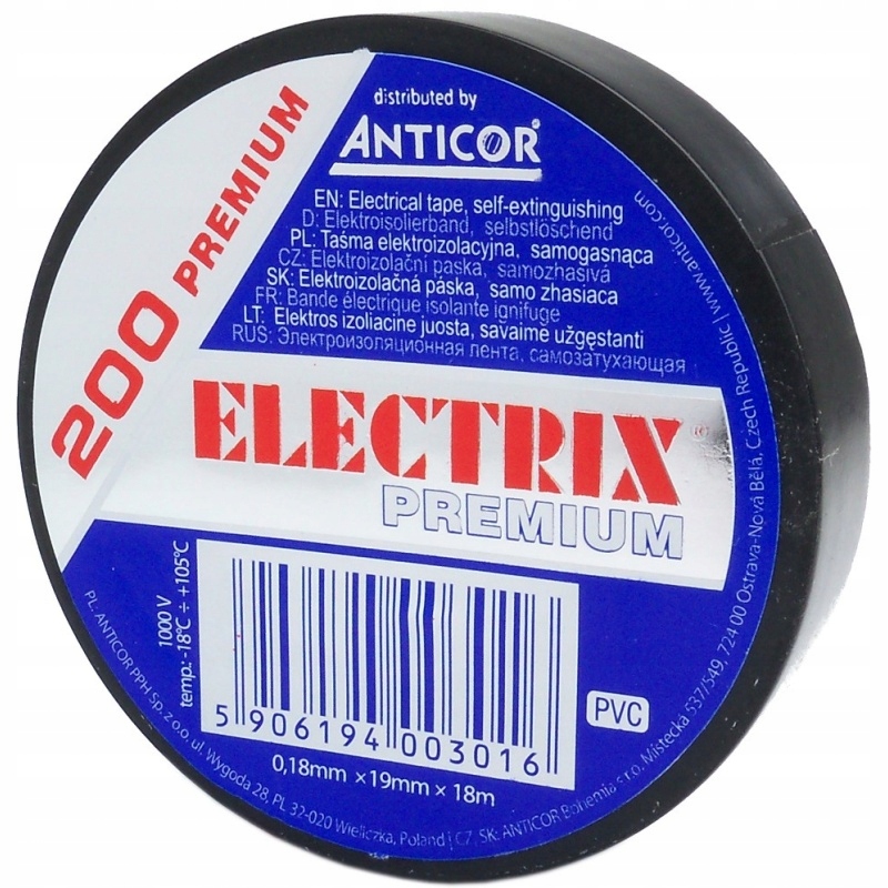 Taśma izolacyjna duża czarna ELECTRIX 200 PREMIUM