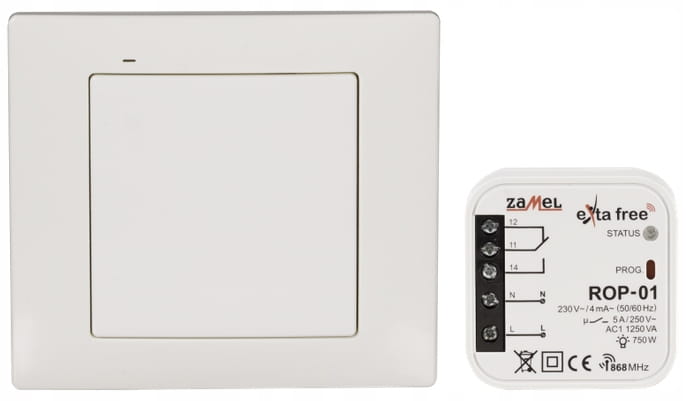 W skład zestawu RZB-01 wchodzi odbiornik radiowy ROP-01 do montażu w puszkach pod- i natynkowych oraz nadajnik RNK-02 który, dzięki zasilaniu bateryjnemu, może być zamontowany w dowolnym miejscu. Zestaw oferuje komfortowe rozwiązanie służące do zdalnego sterowania oświetleniem lub odbiornikami innego typu.